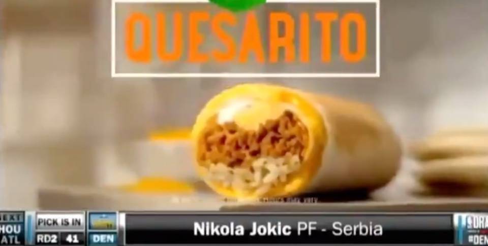 接着在2014年选秀大会上,掘金用首轮第16顺位选择了努尔基奇,然后用次轮第41顺位选择了约基奇,而当约基奇被选的消息播放时,电视转播正好切换到了Taco Bell广告上,他哥哥在美国第一时间打电话把这个喜讯告诉约基奇,约基奇此时正在睡觉,听到这个消息没有任何波澜,他根本不认为自己能打NBA。