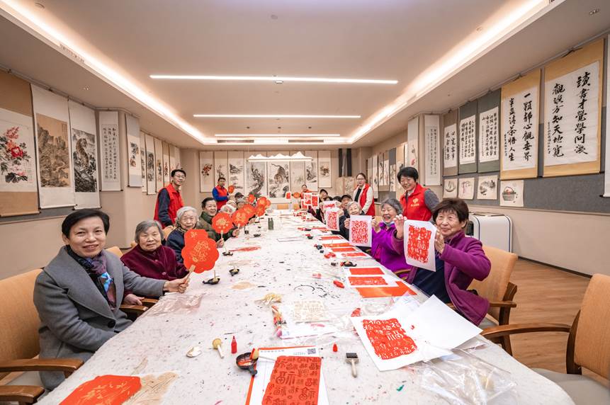 活动在充满传统韵味的“非遗手工课堂”中温馨开启。老人们与福彩志愿者围坐在一起,亲手拓印“福”字、绘制团扇,在一笔一画、一印一染之间,将美好的祝愿融入作品,笑语声中传递着浓浓的暖意。